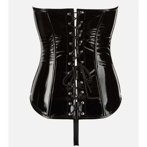 Black LevelBlack Level blizgus lateksinis korsetas sukurtas pabrėžti kūno linijas ir suteikti išraiškingą įvaizdį. Atviri kaušeliai su lankeliais palaiko krūt...