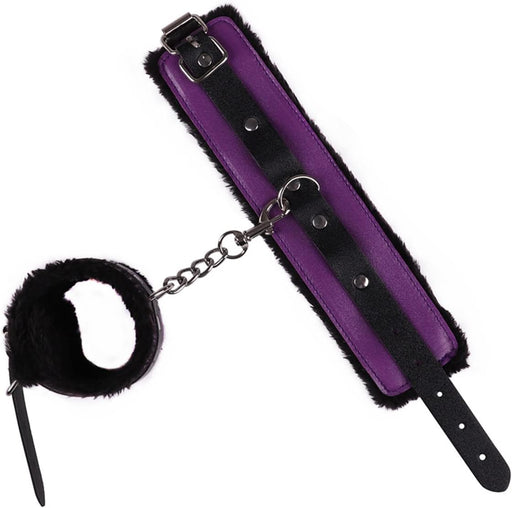 Peržiūrėkite visą informacijąErotinis 13 dalių odos SM rinkinys su rankogaliais ir kaiščiu poroms (violetinis)