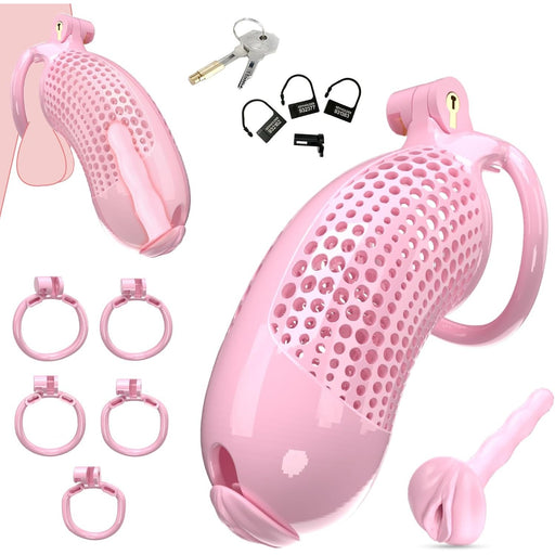 View full detailsDeluxe male penis cage with female vagina and rings – XXL, pink