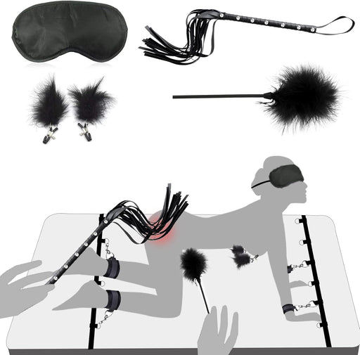 BDSMYOUDiscover a new level of pleasure with this 4-in-1 BDSM play set, which includes adjustable wrist and ankle cuffs, a restraint cross, and a silky ey...