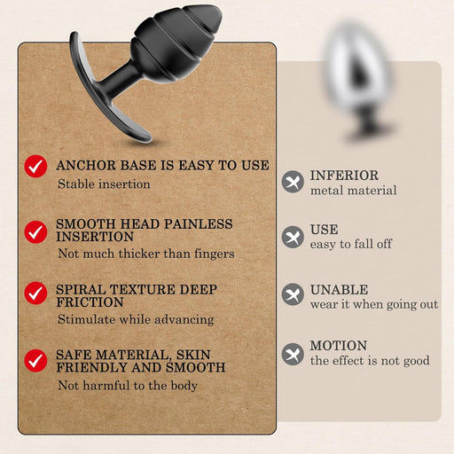 View full details3-piece anal plug set with spiral shape and large anchor