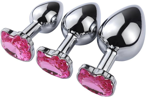 Stainless Steel Anal Plug Set with Crystal Heart Cone – 3 Size Set for Women and Men
