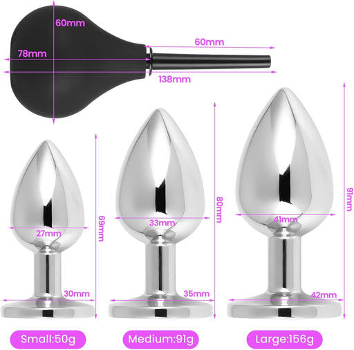 View full detailsMetal anal toy set with colored crystal diamonds and anal shower