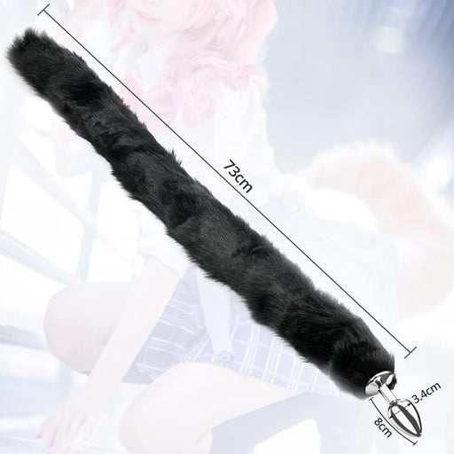 View full detailsLong fuchsia tail anal plug with metal base and fur, size M