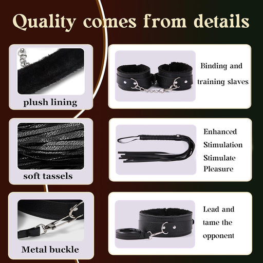 View full details16-piece BDSM set with feather whip and eye mask for relaxation