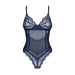 Nightly Blue Lace Open Bottom Bodysuit - Dark Blue