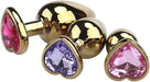 Glitter Gold Anal Plugs with Colored Crystal Heart Shape – 3 Sizes for Anal Trainer