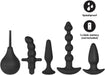 Discover a complete set of anal plugs for both beginners and advanced users. The set includes four flexible silicone plugs of different sizes and shapes with tapered heads, allowing you to comfortably and safely start or continue your training.