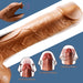 The dildo has a naturally shaped shaft with delicate veins and protruding egg-shaped details, and the heating function provides heat that resembles a real touch.
