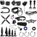 38 dalių BDSM rinkinys su rankogaliais, akių kauke ir plaktu