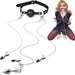 BDSM 4 in 1 Bondage Rinkinys Su Burnos Kamštuku ir Klitorio Spaustuku