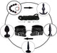 Atraskite naujus malonumo horizontus su šiuo išsamus BDSM komplektu, kuris suteikia ir minkštumo, ir aštrumo jūsų žaidimams. Komplekte rasite rankogalius, diržus, apykakles, plaktuką, akių raištį, kandiklį, spenelių spaustukus, kištukus ir vibratorių, skirtus įvairioms fantazijoms įgyvendinti.