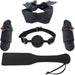 Deluxe 5 dalių BDSM įkalinimo rinkinys su kauke, kamuoliuku, ir plaštake