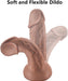 Realistiškas 23,5 cm silikoninis dildo su stipria prisispaudimo baze ir storu kotu